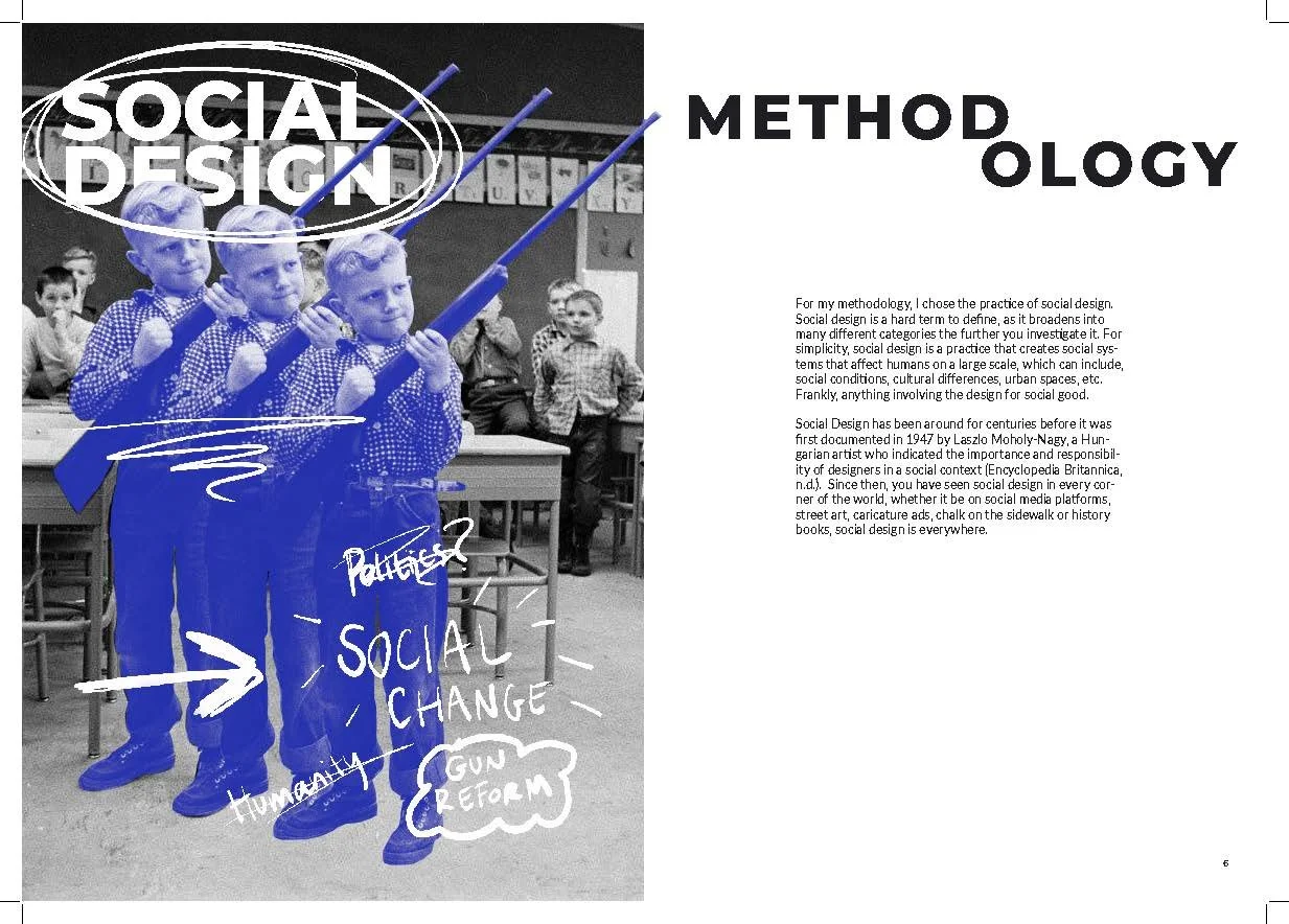 This project looks into theories, methods, and practitioners, that helped aid my research in gun reform within the United States from a Social Design perspective.